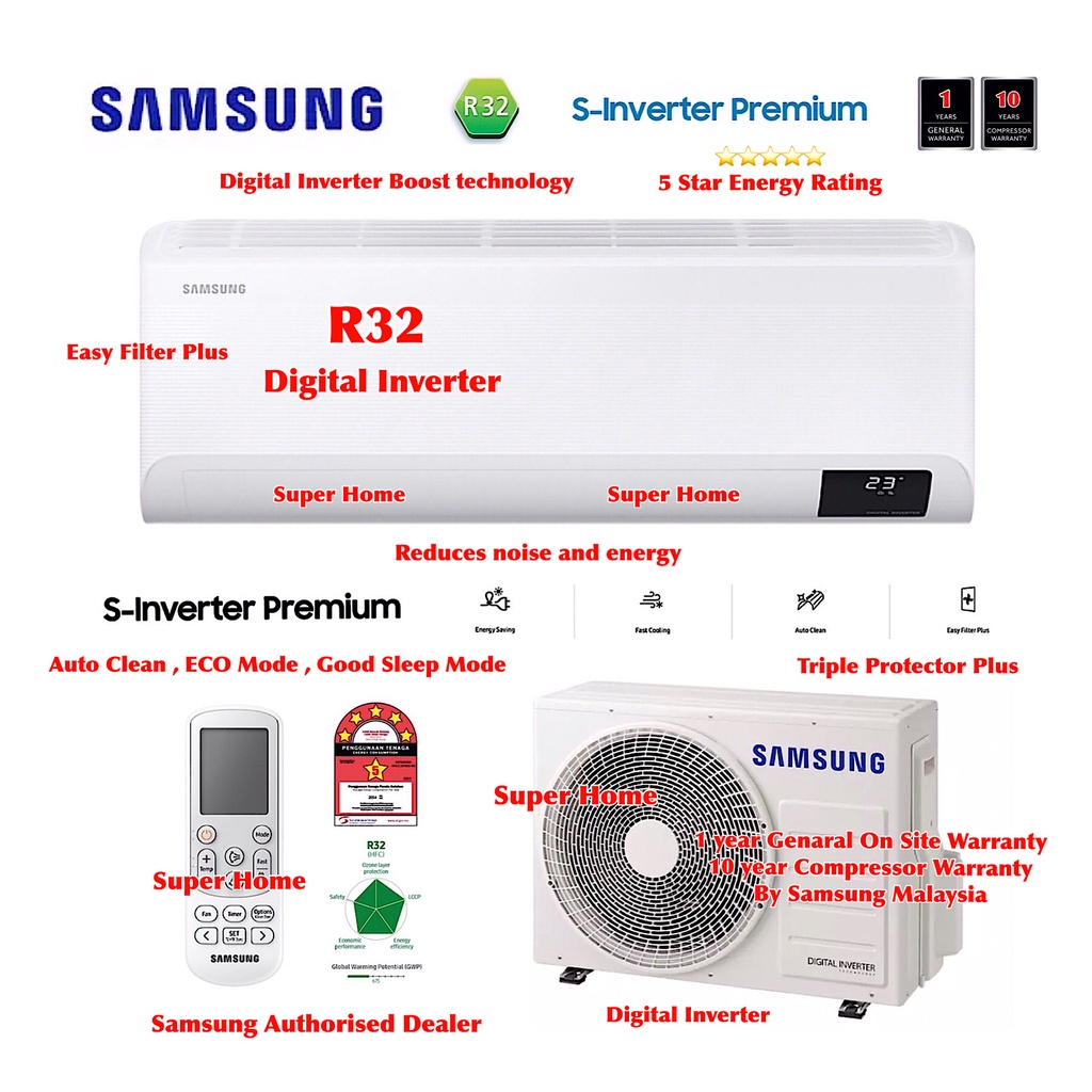 Samsung S Inverter Premium R32 Inverter Aircond 1 0hp 2 5hp Samsung R32 Inverter Air Conditioner Shopee Malaysia
